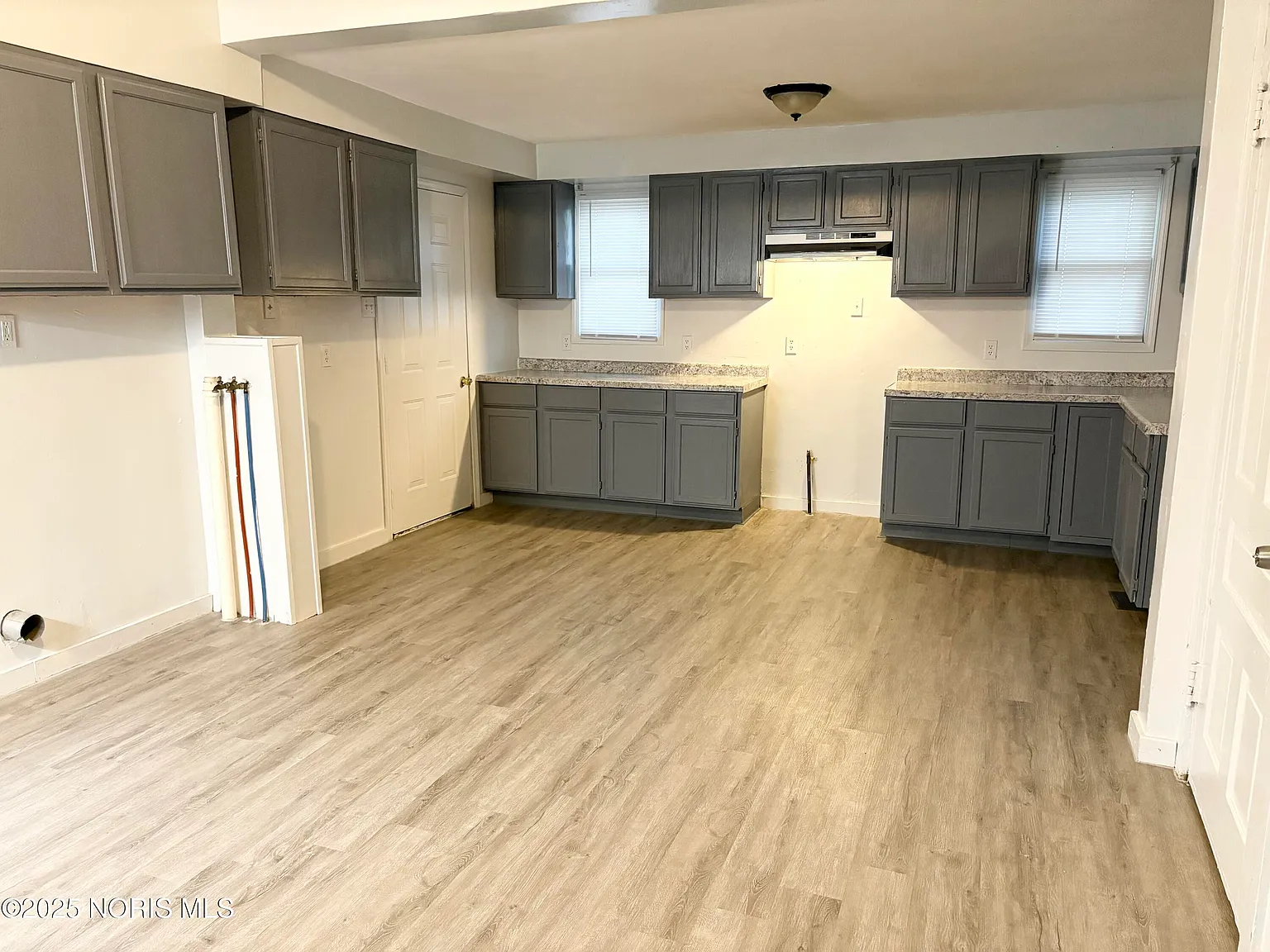 At the heart of the home is a fully remodeled kitchen, designed with both functionality and style in mind. Featuring new vinyl plank flooring, freshly painted cabinets, updated countertops, and a new exhaust hood, this kitchen is ready for family dinners or entertaining guests. The open layout allows for easy flow from the living room to the kitchen and dining area, making it an ideal space for everyday living.